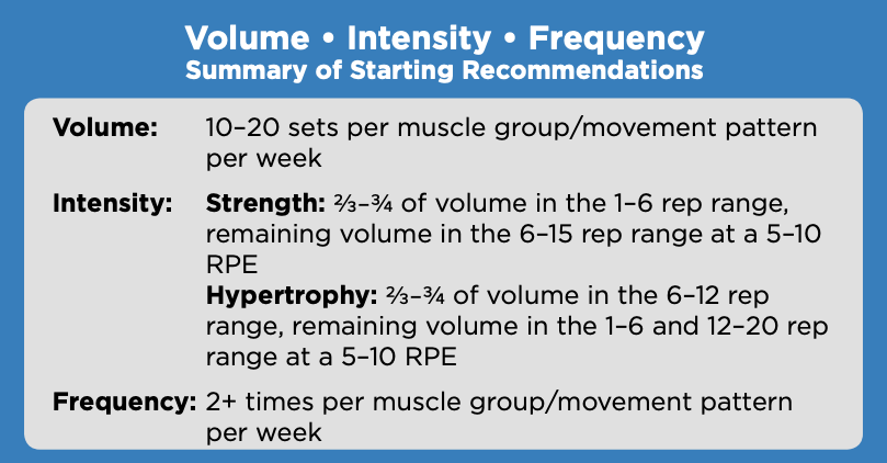 Intensity is specific to your goal. Lift heavy for strength, and ensure sets are performed at an adequate effort for size. Remember progressive overload.