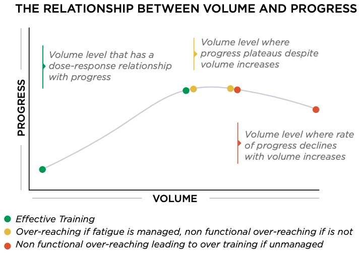 Volume is the total amount of work performed, and to a point, shares a non-linear relationship with adaptation.