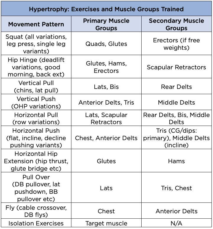 | 1–2 compound exercises for each major muscle group. 1–3 isolation exercises for each muscle group. |